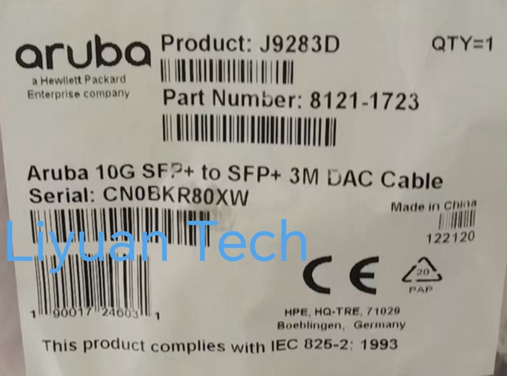 - Product description: HPE J9283D _Aruba 10G SFP+ DAC Cable, 3m length/Passive copper/SFP+ to SFP+_liyuan tech
